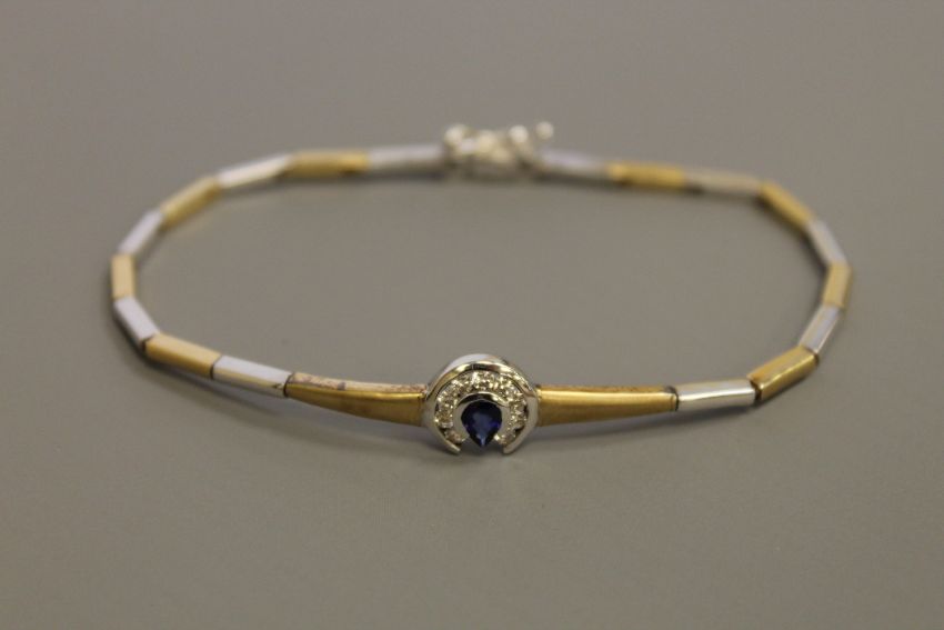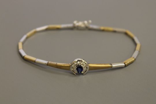 An 18ct white and yellow gold diamond and sapphire set bracelet, 14.9g (ensuite to the following lot)