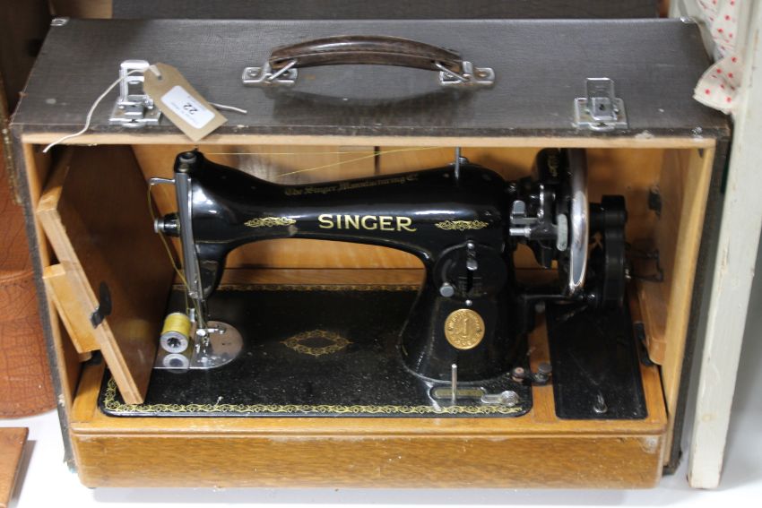 A cased mid twentieth century Singer hand sewing machine