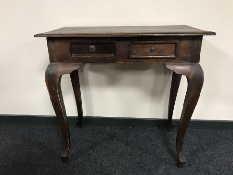 A contemporary hardwood two-drawer console table