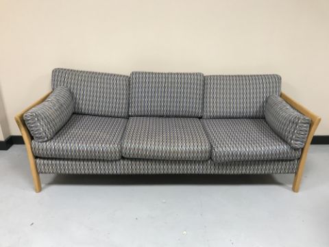 A wood framed three seater settee