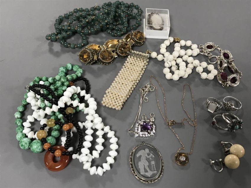 A collection of costume jewellery, beads, necklaces etc.