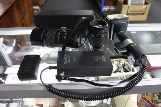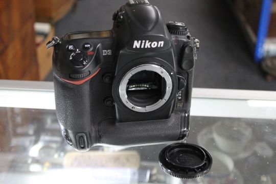 A camera case containing a Nikon D3 camera and a Nikon D100 camera, with lenses and accessories