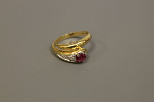 An 18ct gold ruby and diamond snake ring, 4.7g