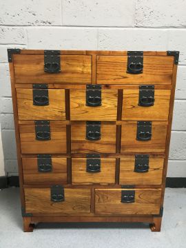 A contemporary thirteen drawer metal bound ship's style chest
