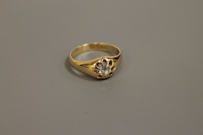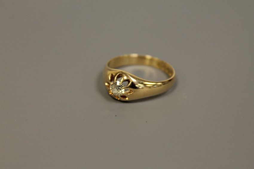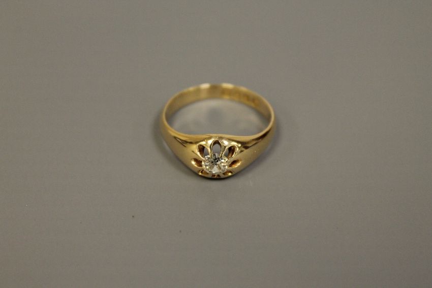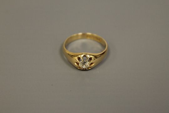 18ct antique signet ring set with old cut diamond, approximately .5 carat 4.7 grams
