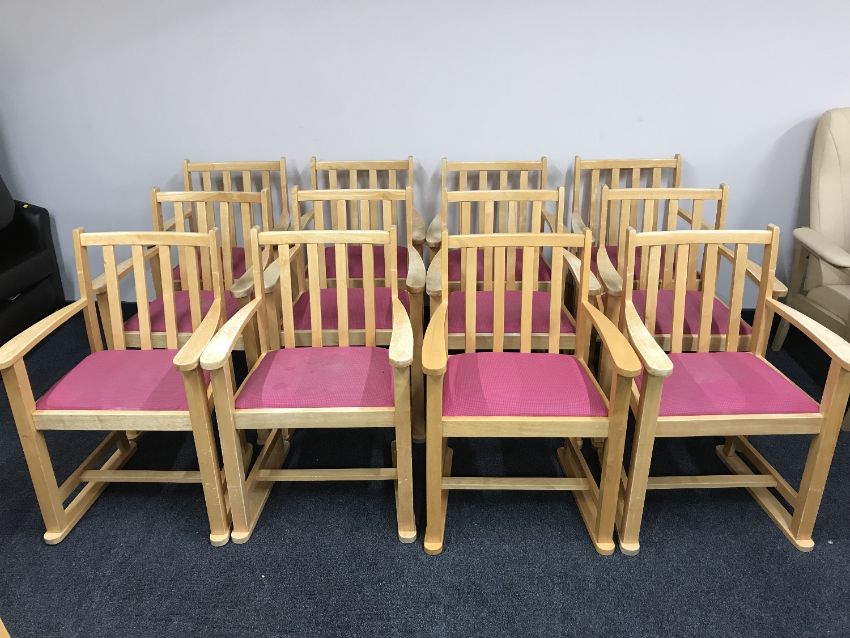 A set of twelve contemporary beech armchairs