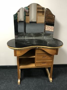 A pine kidney shaped dressing table with mirror