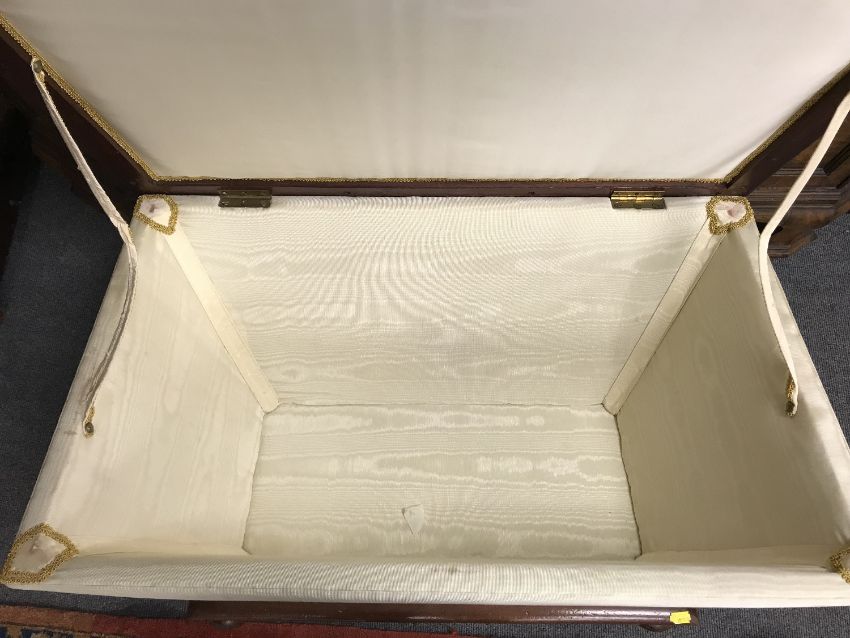 A 19th century sarcophagus form storage box of bun feet, dimension 79 cm x 51 cm.