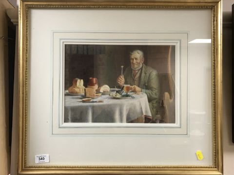 Henry Spernon Tozer : A Gentleman at supper, watercolour, 31 cm x 21 cm, dated 1907, signed.