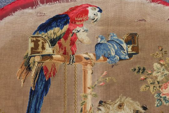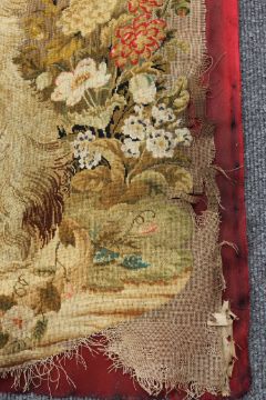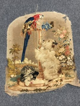This measures approximately 83cm by 68cm. Thread coming away all around the edges and some holes in the centre. See the additional images.