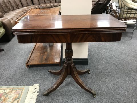 A Regency style mahogany d-shaped card table, width 85 cm.
