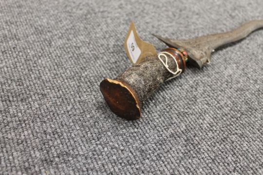 Some areas of rusting to the blade. Some losses to the grip. Lacks sheath. Overall length 43cm.