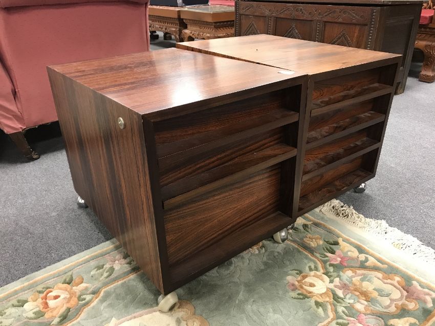 A pair of mid 20th century rosewood low filing cabinets, width 44 cm, height 49.5 cm. (2)