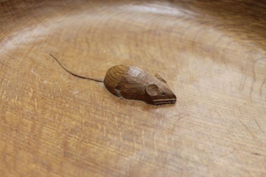 A Robert 'Mouseman' Thompson oak fruitbowl, with carved mouse signature to interior, diameter 30cm CONDITION REPORT: Very good condition with no noticeable faults. See images.This lot can be packed and posted within the UK for £20. All lots are sent without insurance and at the buyer's risk.