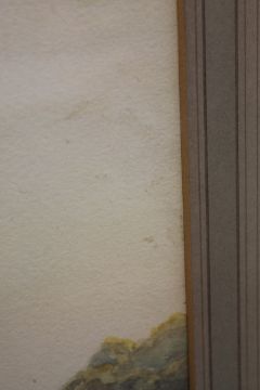 Generally in a very good state of preservation. Some light surface dust and dirt, more visible to the skyline near the margin. Very small areas of foxing. Losses to the gesso frame. This has not been examined out of the mount. Please see the additonal images, taken both with flash and without.