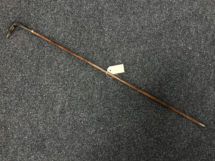 A Victorian cane sword stick with horn grip, the white metal collar with inscription 'Presented to Mr A Nicol by Mr Franklin, Bermuda, May 1865, length 90 cm.