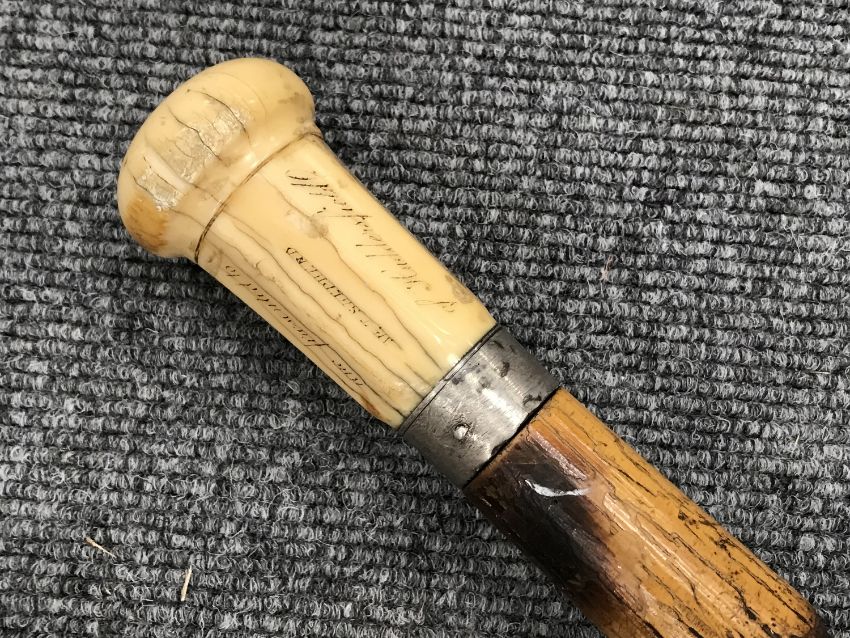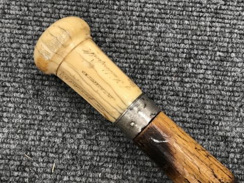 An early 19th century Gentleman's walking cane with ivory pommel, dated 1842.