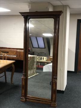 A late 19th century mahogany mirror with pillared sides, width 98 cm.