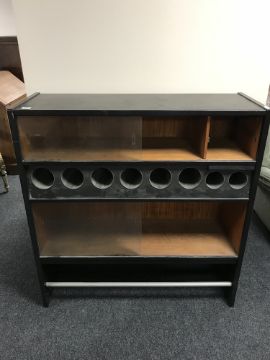 A mid 20th century cocktail cabinet, with glass sliding doors and graduated wine bottle holders, width 110 cm