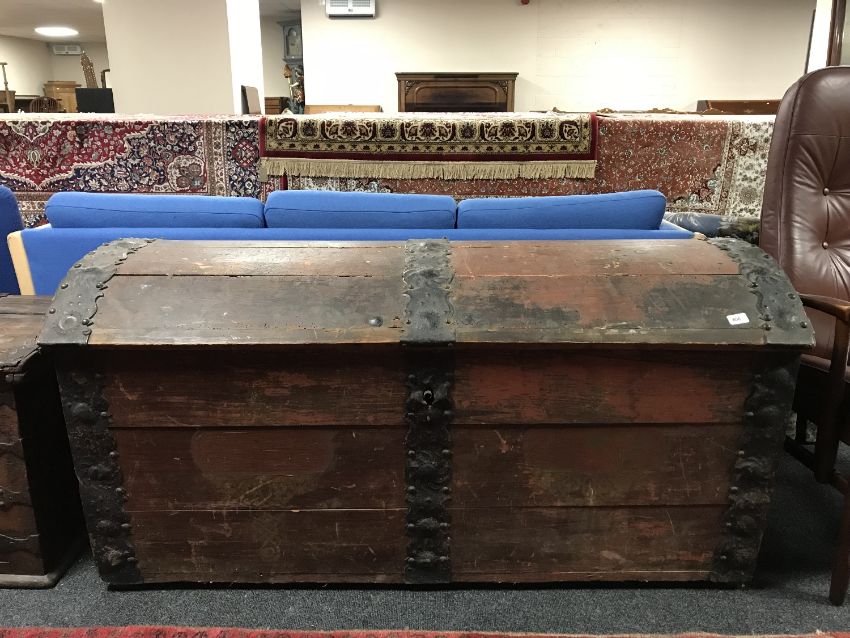 A 19th century pine continental dome topped trunk, width 145 cm.