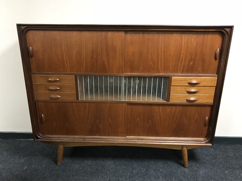 A mid 20th century teak multi drawer sideboard, with sliding panel doors, width 154 cm