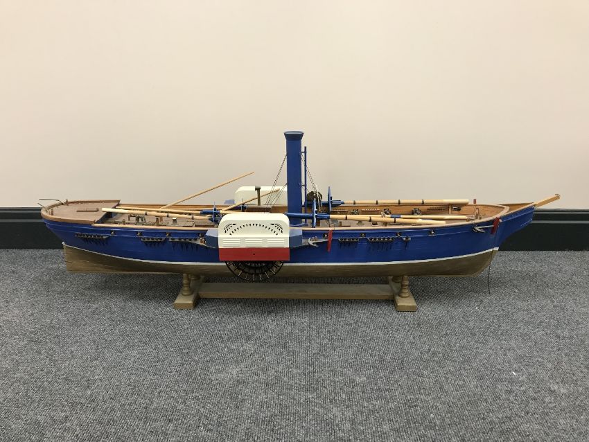 A scratch-built model - Paddle steamer, on stand, length 110 cm.