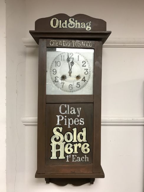 An early 20th century and later eight day wall clock 'Old Shag Tobacco'