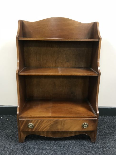 A set of mahogany open shelves fitted a drawer