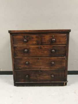 A Victorian stained pine five drawer chest