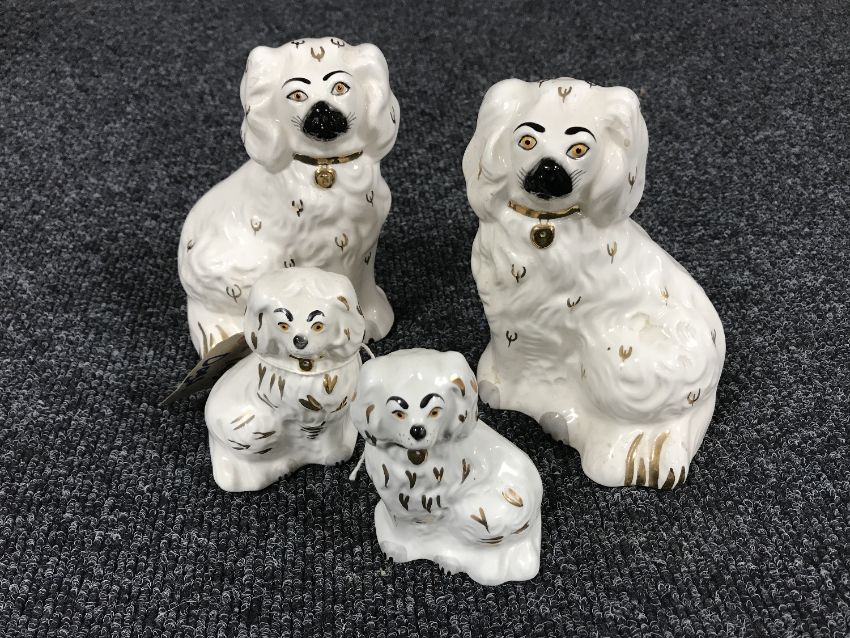 A pair of Royal Doulton Staffordshire-style spaniel dog figures, together with a smaller pair by Beswick. (4)