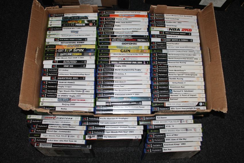 Two boxes of Playstation and Xbox games
