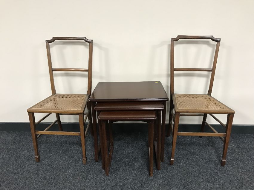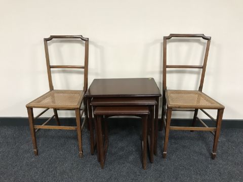 A pair of mahogany bedroom chairs and a nest of Parker Knoll tables