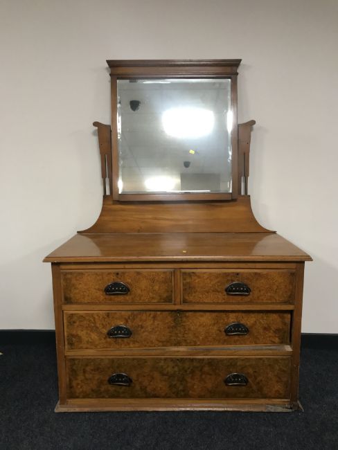 A satin walnut four drawer dressing chest