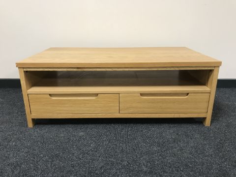 A contemporary oak audio stand