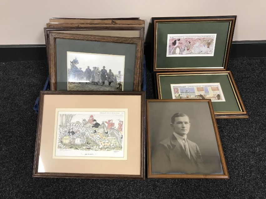 Twelve assorted pictures and prints including eight framed prints Cries of London, photographs, Henry Brewis signed print etc