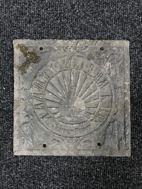 A lead Tempus Fugit sun dial