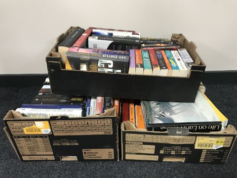 Three boxes of hard back books