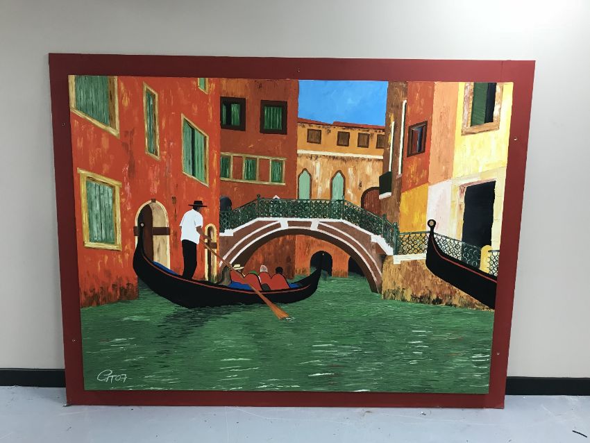 A large framed oil on canvas mounted on board by Gareth Thomas - a Venice canal scene, 200 cm x 150 cm
