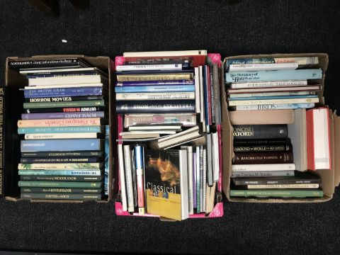 Three boxes of hard back books - antiques, royalty, wild life etc