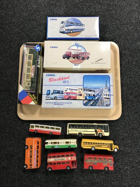 A tray of boxed and un-boxed die cast buses - Corgi etc