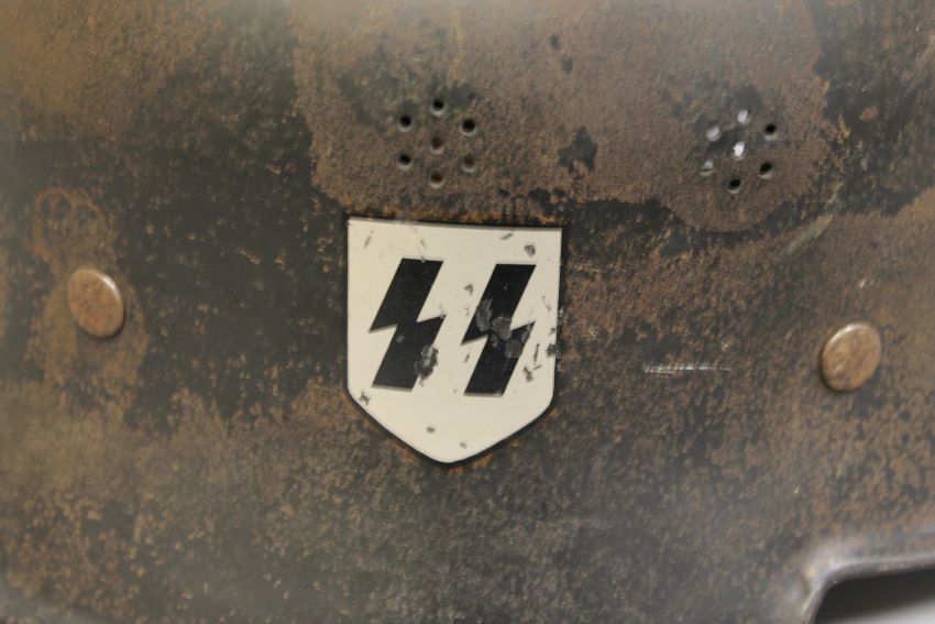 As I understand it, the SS decal is not correct for this type of helmet, suggesting that this is a reproduction or has at least been modified at some point. Sold as seen and without reserve.
