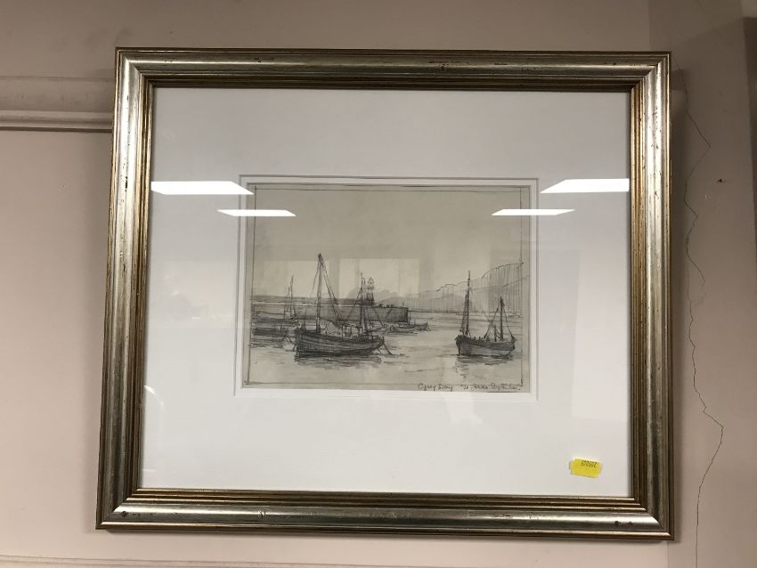 Mary Williams : Grey day St Ives September, graphite, 18 cm x 24 cm, framed.