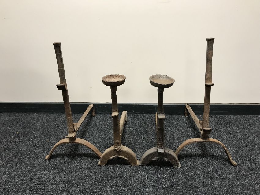Two sets of early 20th century fire dogs