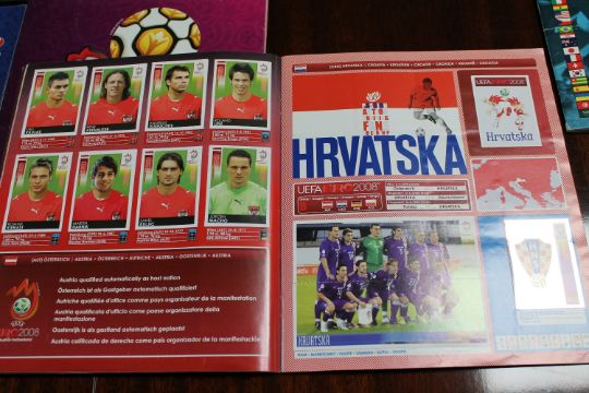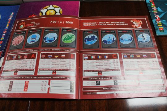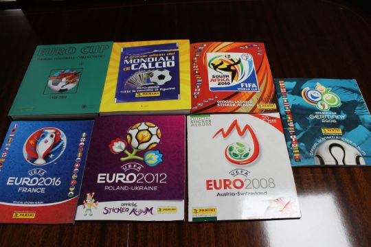 The Euro 2016 sticker album appears to be empty, the other three albums appear to have been completed.
