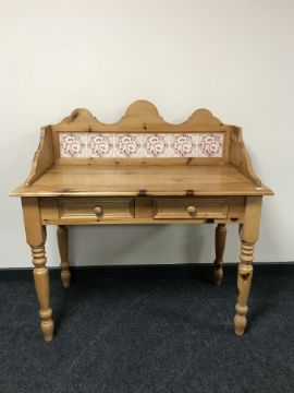 A contemporary pine tiled backed washstand