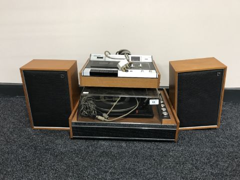 A Garrard turn table, together with a pair of Decca teak cased speakers and a Decca stereo sound cassette deck