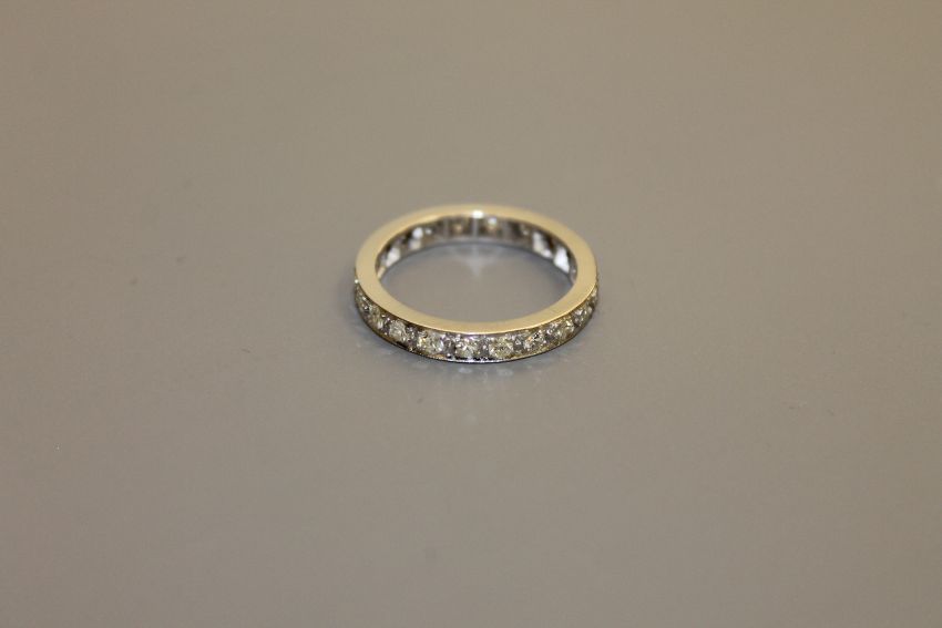 A platinum and diamond eternity ring