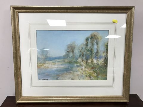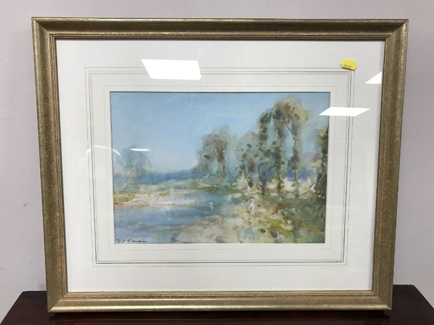 David Thomas Robertson : The river Tyne near Bywell, 25 cm x 35 cm, watercolour, signed, framed.