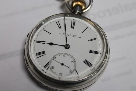 Case maker 'JO'. 52mm case. Dial with tiny hairline near 6 o' clock. Glass with some minor chips around the rim. Slight gap near the hinge when back cover is shut. The watch is running but when it is wound the hands jump erratically, the watch obviously needs some attention. See images.