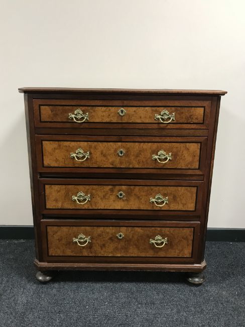 A late 19th century inlaid walnut four drawer chest
